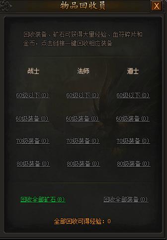 在高等级情况下,打怪等获得经验途径效率降低,装备回收成为重要的经验来源,所以平常打BOSS获得的多余装备一定不要扔,在装备回收员出回收,可以获得大量的奖励哦!