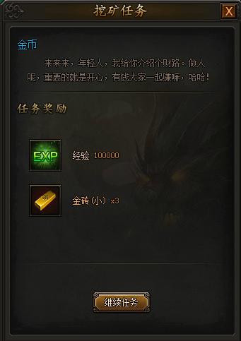 完成挖矿任务后,可以获得大量金砖奖励,使用后可得海量金币。