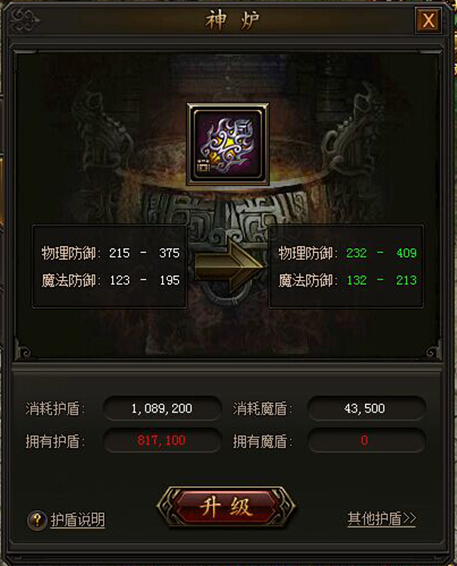 低等级的护盾可通过消耗护盾碎片进行升级,进阶为更高等级的护盾。拥有高等级护盾,再也不担心被别人一刀秒杀了。