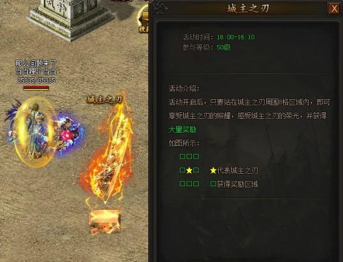 每天16:00-16:10分,玩家可以在荒漠参加城主之刃活动,只要站在城主之刃周围8格范围之内,就可以获得大量经验、功勋、BOSS积分、金币等奖励。
