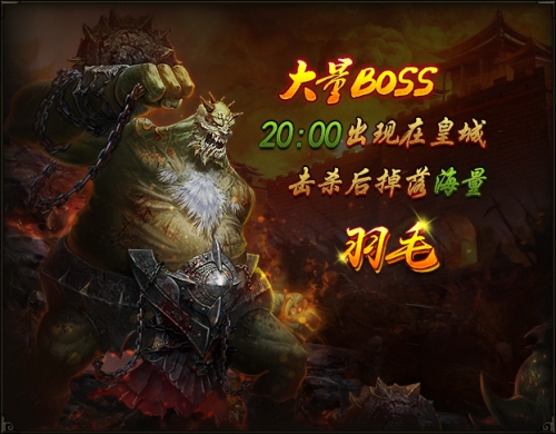 合服第四天,炼狱巨魔率领大量怪物进攻皇城,击杀这些入侵的魔族可以掉落海量羽毛!